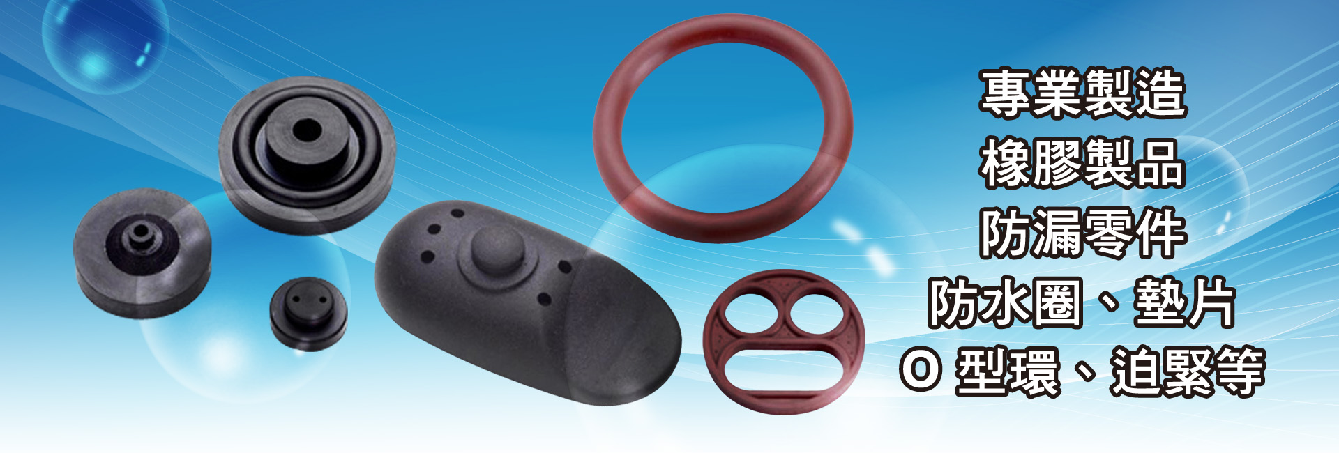 億濱橡膠有限公司台灣專業橡膠製品工廠.創立於 1975 年.專門從事於橡膠製品製造廠商,皆以『 物美價廉、品質優良、交貨準時為理念。 』,舉凡 NR 、 NBR 、 SILICONE 、 VITON 、 IR 、 IIR 、 NEOPER、 EDPM 、 SBR …等材質。耐油、耐熱、耐候、耐酸鹼、耐化學、耐瓦斯、冷煤…等。廣泛使用於汽機車零件、電子零件、電腦零件、消防器材、醫療器材、瓦斯、衛浴設備 … 等。